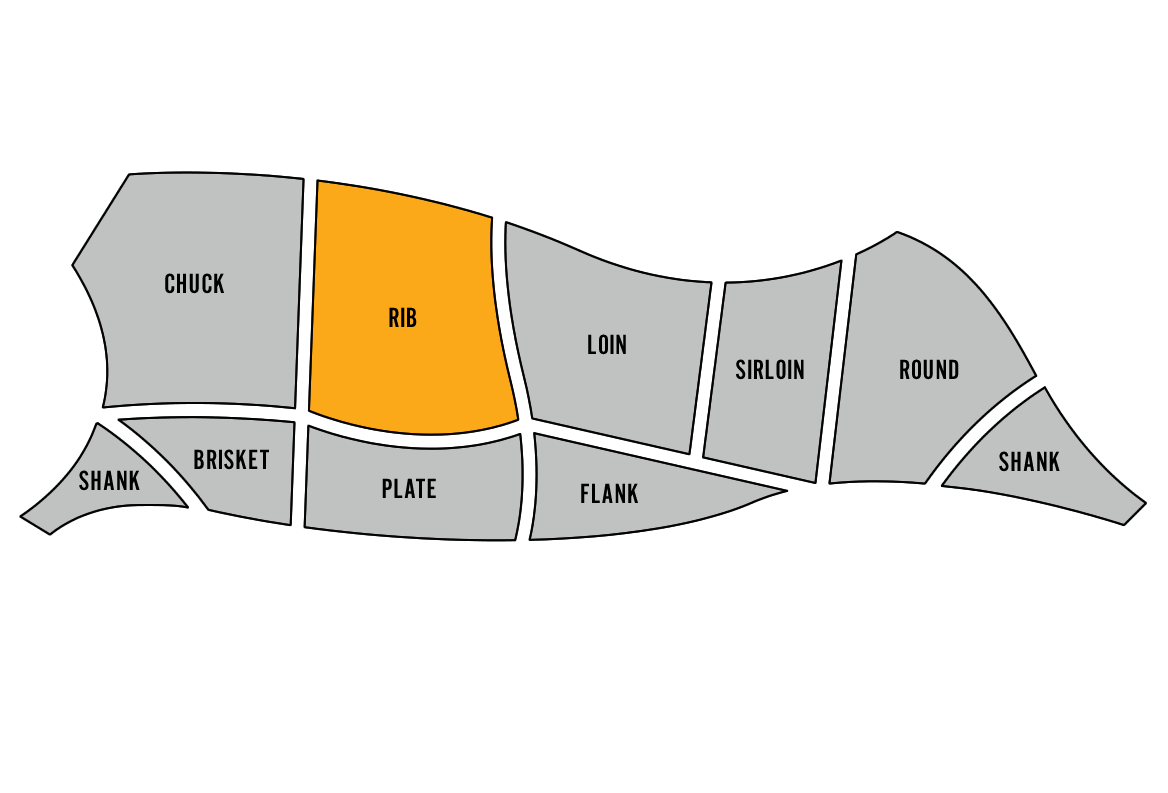 Short ribs come from the rib part, which contains three to four ribs. Depending on where it is cut, it can be between 5-15cm thick and contains meat intertwined with muscle, fat and sinew, giving it a supreme and strong meaty flavour.