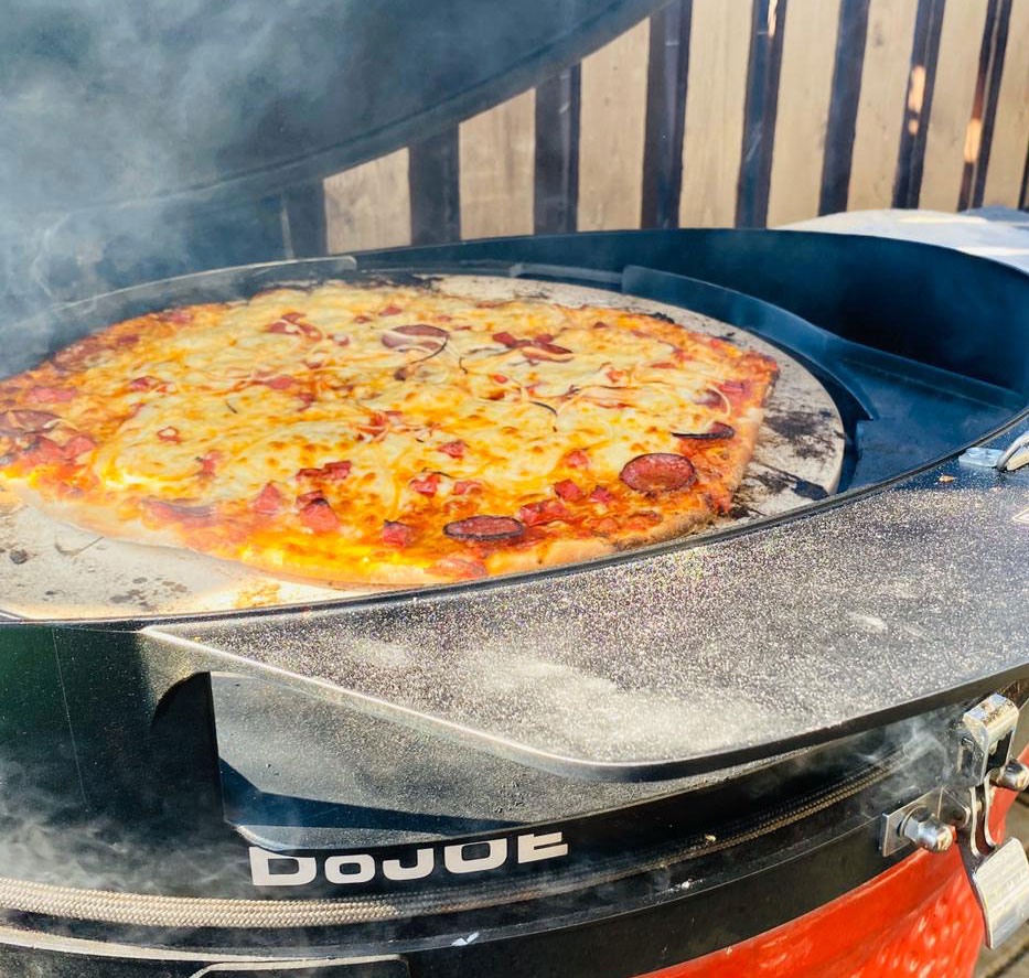 The Kamado Joe DoJoe Classic is a special pizza cooking system designed to make your Kamado Joe grill ideal for cooking pizzas. This system helps to achieve the perfect heat and air circulation when cooking pizza, ensuring the perfect crispy crust and evenly cooked toppings.