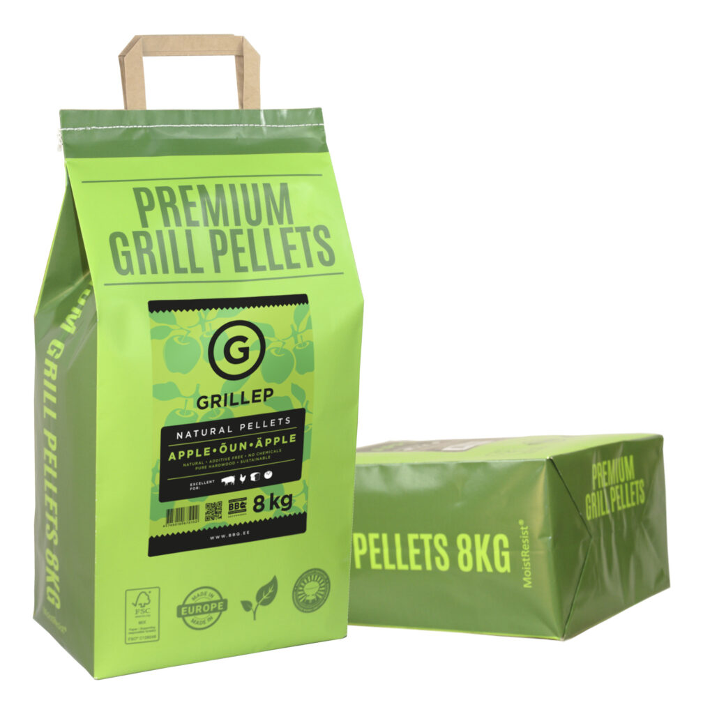GRILLEP Premium -grillipelletit on valmistettu 100% luonnollisesta omenapuusta ilman lisäaineita ja liimoja. Nämä FSC-sertifioidut pelletit antavat lihalle, kalalle ja vihanneksille hienovaraista, hieman makeaa savun makua, joka sopii erityisesti sianlihan, siipikarjan ja kalan kypsentämiseen.