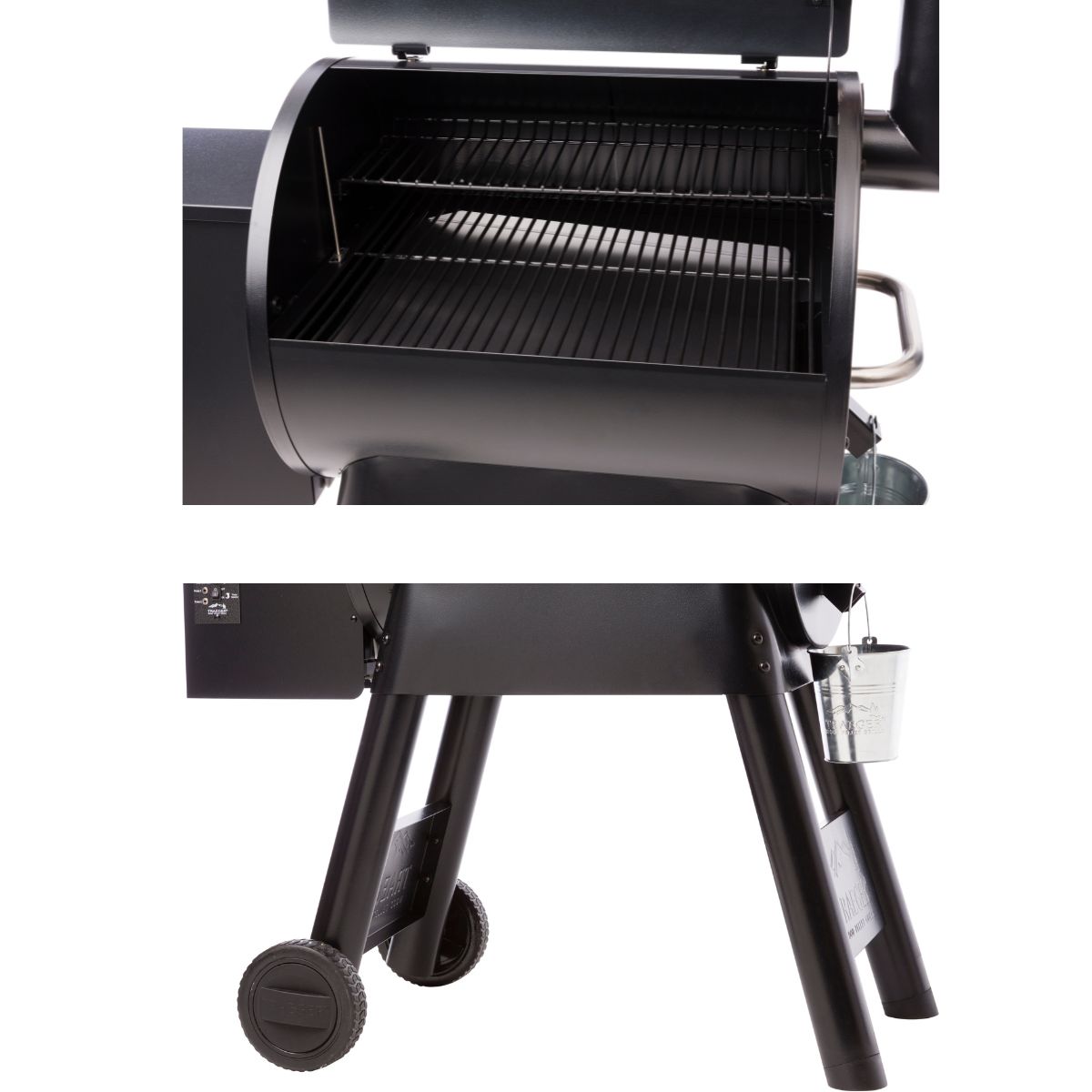 "Traeger" kultinis 22 colių grilis visu savo grožiu. Tikra retro mašina. Metų pardavimai parodė, kad tai itin patvarus modelis. Dėl paprasto valdymo skydelio, tvirto korpuso ir nesudėtingos priežiūros jis ilgus metus bus tikras namų prietaisas. Statinės formos kepimo kamera pagaminta iš milteliniu būdu dažyto kokybiško plieno, kuris dėl savo formos užtikrina puikų šilumos ir dūmų pasiskirstymą visame grilyje. Dėl to ant dviejų lygių emaliuotų plieninių grotelių tolygiai kepa maistas abiejuose lygiuose. Temperatūrą galima nustatyti valdymo pulte, o norint nutraukti kepimą, galima pasirinkti gesinimo režimą. Prie grilio pridedami du zondai mėsos vidaus temperatūrai stebėti. Vieną kartą paspaudus mygtuką "Zondas", rodoma pirmojo zondo temperatūra, o paspaudus du kartus - antrojo zondo temperatūra. Tiksliai sureguliuotas grilio temperatūros balansas ir skaitmeninė valdymo sistema užtikrina skanų galutinį rezultatą. Granulių išleidimo anga leidžia greitai pašalinti sudegusias granules.