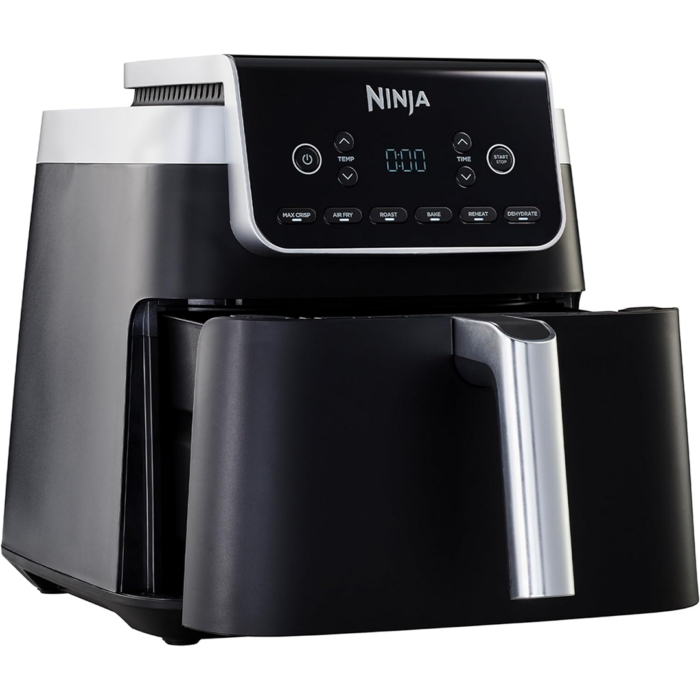 Ieškote vietą taupančios oro keptuvės, kurioje būtų galima gaminti maistą visai šeimai? "Ninja Air Fryer MAX PRO" 6,2 l talpos krepšyje telpa iki 2 kg vištienos arba 1,4 kg gruzdintų bulvyčių, todėl puikiai tinka kepti keturiems žmonėms. Dėl reguliuojamos "Crisper Plate" plokštės maistą galite kepti dviem būdais: tolygiai traškiai iš apačios arba greitai apkepti.
