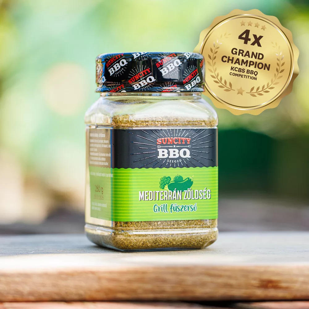 Suteikite savo kepsniams saulėtą Viduržemio jūros regiono skonį su "SunCity BBQ Mediterranean Vegetable Grill Rub"! Šiame kruopščiai subalansuotame prieskonių mišinyje derinamos aromatingos Viduržemio jūros regiono žolelės, česnakai, svogūnai ir prieskoniai, kad išryškėtų natūralus daržovių skonis ir jos įgautų ypatingą dūmo atspalvį.