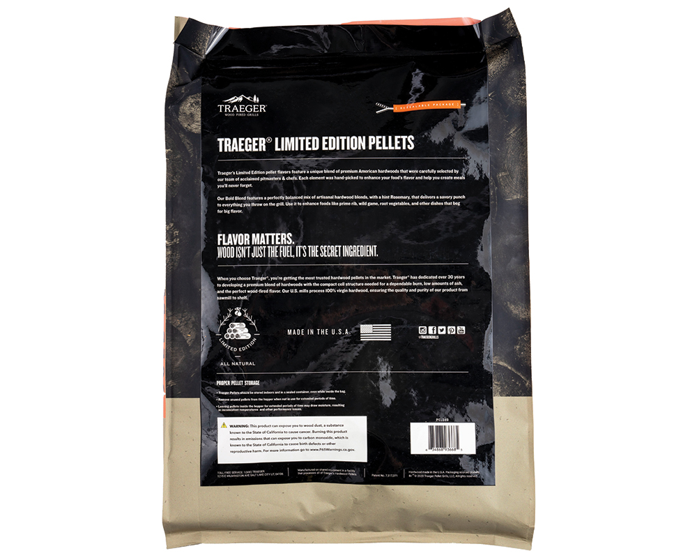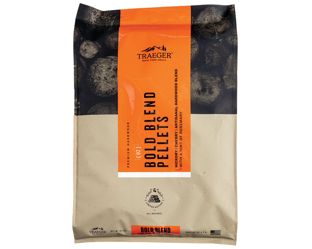 Traeger Bold Blend maisījuma granulas ir hikori un ķiršu kombinācija ar rozmarīna piegaršu.
