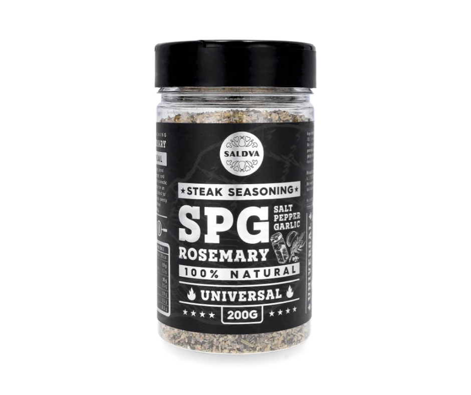 Steigi maitseaine SPG Rosemary – maitseküllane steigimaitseaine, mis ühendab klassikalise SPG (sool, pipar, küüslauk) aluse ja värske rosmariini aroomi.