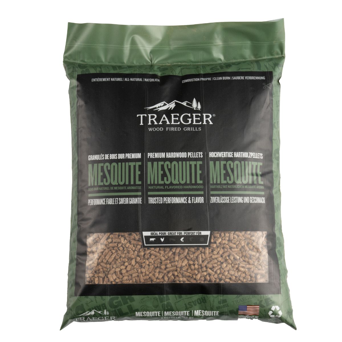 Traeger Mesquite pelletid sobivad suurepäraselt veiseliha, kana ja kala küpsetamiseks ilma nende loomulikku maitset varjamata.